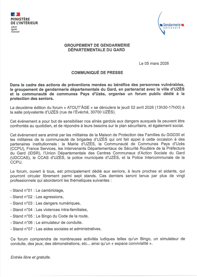 Fil d'info FORUM "ATOUT'AGE"Lire la suite La bibliothèque se livreLire la suite La ludothèque du pays d'UzèsLire la suite Inscription à l'école Rosa BonheurLire la suite Plus d'infos Communauté 360 - GardJOURNEE DES OISEAUX
